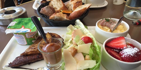 Passez ensuite au plateau salé : salade César et œufs brouillés saumon ou bacon.