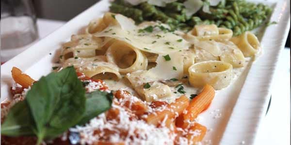 Ensuite, dégustez le trio de pâtes italiennes agrémentées selon l’inspiration du moment : pesto maison, champignon & parmesan et tomate ricotta salée.